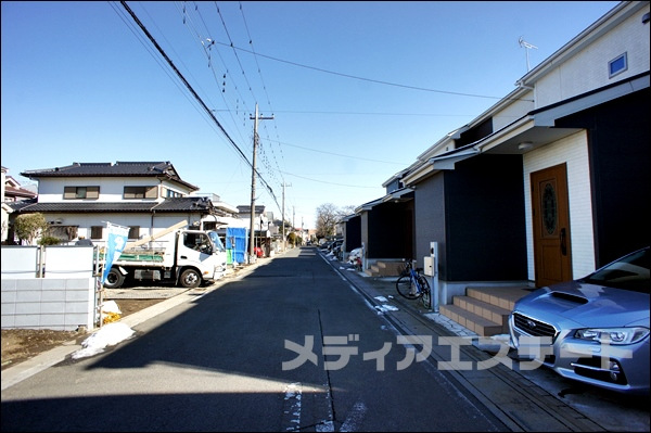 | 特色 | 防犯断熱玄関ドア、24時間換気、玄関収納下駄箱、低ホルモアルデヒド、1Fシャッター、カウンター対面キッチン、テレビモニター付インターフォン、公営水道、東京電力、都市ガス、南道路、駅徒歩15分以内、洗面化粧台三面鏡、手すり付階段、べた基礎、バリアフリー、シャンプードレッサー付洗面化粧台、全居室クロゼット付、エコジョーズ、床下収納、全居室ペアガラス、ユニットバス、浄水器一体型シャワー水栓、LED照明(玄関廊下キッチントイレ洗面所)、外壁サイディング、全サッシ網戸付、本下水、小学校10分以内 | |||||||||||||||||