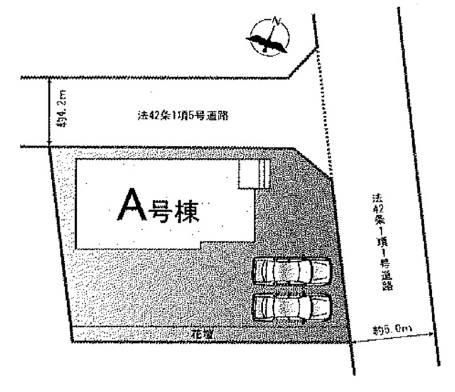 | 接道(全て) | 北東 5m(幅員) 公道 北西 4.2m(幅員) 私道 |