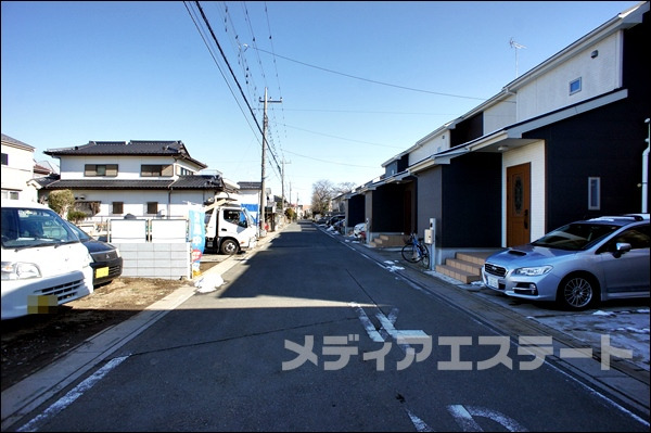 | 特色 | 防犯断熱玄関ドア、24時間換気、玄関収納下駄箱、低ホルモアルデヒド、1Fシャッター、カウンター対面キッチン、テレビモニター付インターフォン、公営水道、東京電力、都市ガス、南道路、駅徒歩15分以内、洗面化粧台三面鏡、手すり付階段、べた基礎、バリアフリー、シャンプードレッサー付洗面化粧台、全居室クロゼット付、エコジョーズ、床下収納、全居室ペアガラス、ユニットバス、浄水器一体型シャワー水栓、LED照明(玄関廊下キッチントイレ洗面所)、外壁サイディング、全サッシ網戸付、本下水、小学校10分以内 |