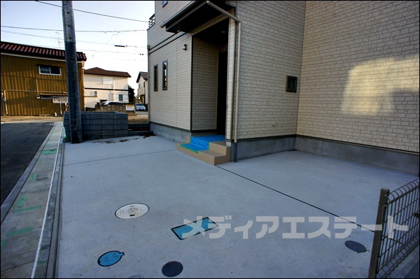 | 特色 | 防犯断熱玄関ドア、24時間換気、玄関収納下駄箱、低ホルモアルデヒド、1Fシャッター、カウンター対面キッチン、テレビモニター付インターフォン、公営水道、東京電力、洗面化粧台三面鏡、手すり付階段、べた基礎、バリアフリー、シャンプードレッサー付洗面化粧台、全居室クロゼット付、エコジョーズ、床下収納、全居室ペアガラス、ユニットバス、浄水器一体型シャワー水栓、LED照明(玄関廊下キッチントイレ洗面所)、外壁サイディング、1F2Fウォシュレット、都市ガス、駐車2台以上、駐車並列2台以上、本下水、角地、フローリング | |||||||||||||||||