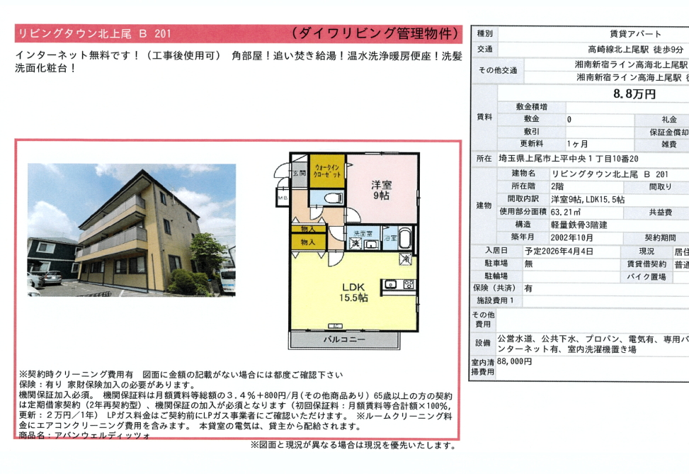 掲載されている物件データが現況と異なる場合は現況を優先します。
