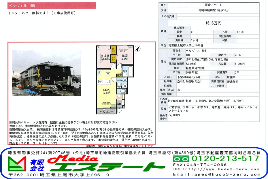 上尾市上の賃貸物件詳細情報