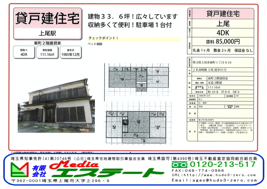 上尾市東町の賃貸物件詳細情報